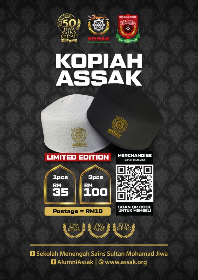 -Sulaman khas "Logo ASSAK" pada kedua-dua tepi kopiah